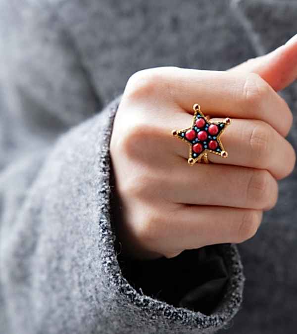 El Yapımı Tasarım Gümüş Yüzük Mercan Taşlı