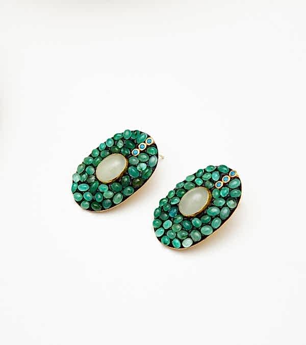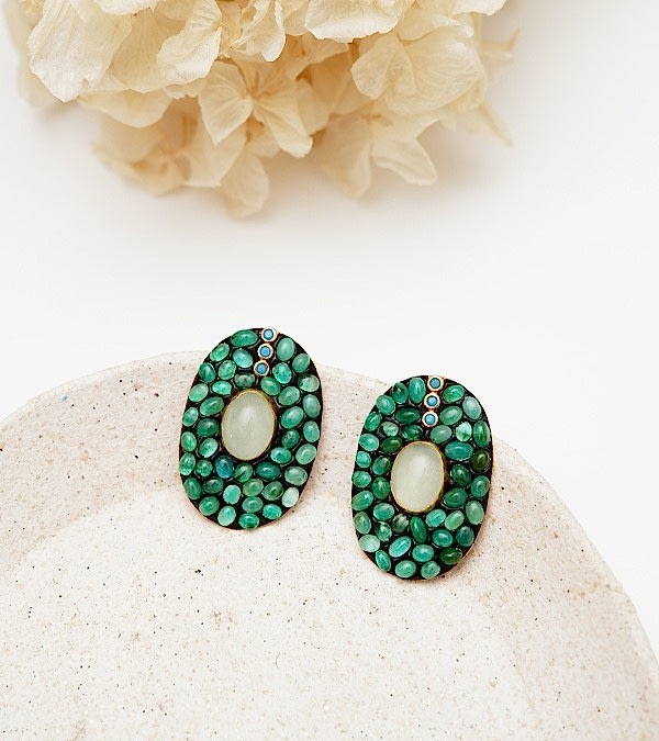 El Yapımı Tasarım Turmalin Taşlı Gümüş Küpe