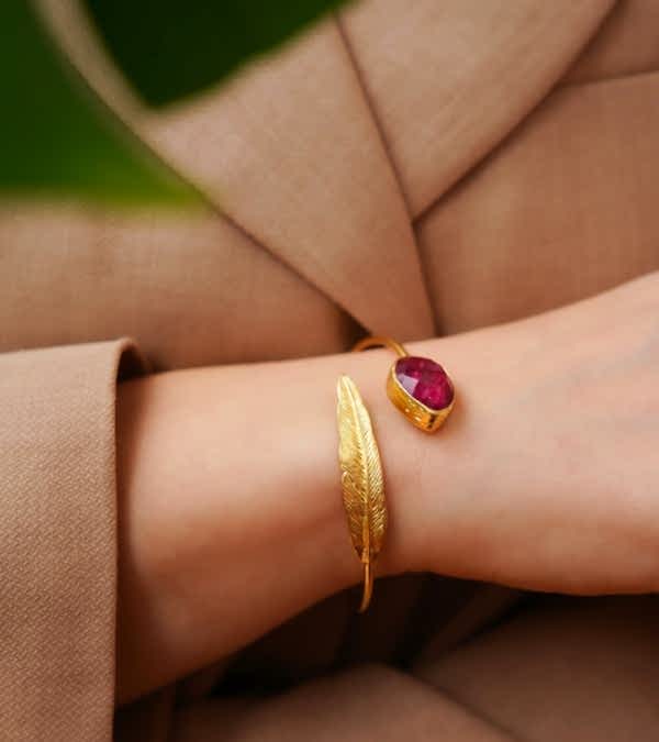 El Yapımı Tasarım Yakut Taşlı Pirinç Bileklik