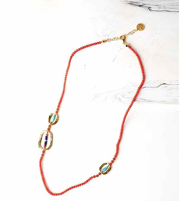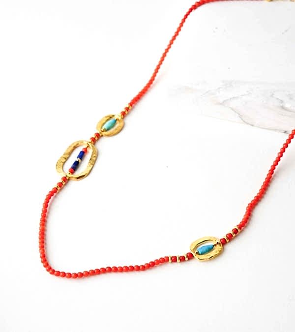 Mercan, Lapis, Turkuaz Taşlı Gümüş Kolye